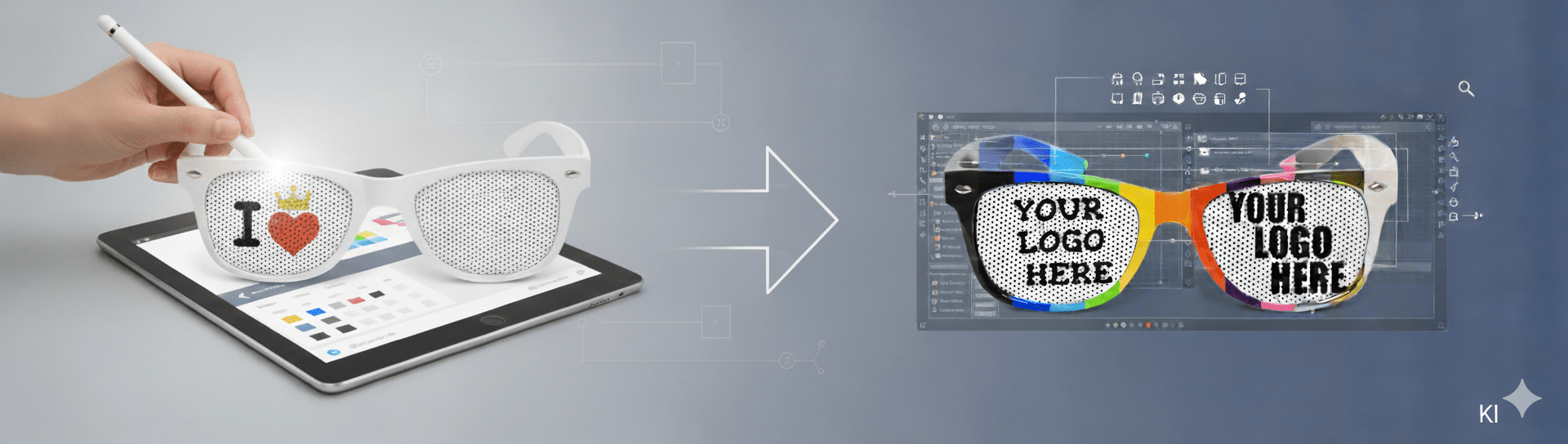 Lässt man sich Sonnenbrillen bedrucken, so kann nur dann sicher von dem erwünschten Ergebnis ausgehen, wenn man den Druck direkt auf der Brille sieht. Der Konfigurator von Printskins bietet genau das! Man konfiguriert den Druck direkt auf den entsprechenden Stellen der Sonnenbrillen. Die Bedienung ist intuitiv, wodurch der Konfigurator im Prinzip selbsterklärend ist. Um einen besseren Einstieg zu bieten wurden zwei kurze Anleitungsvideos gedreht.